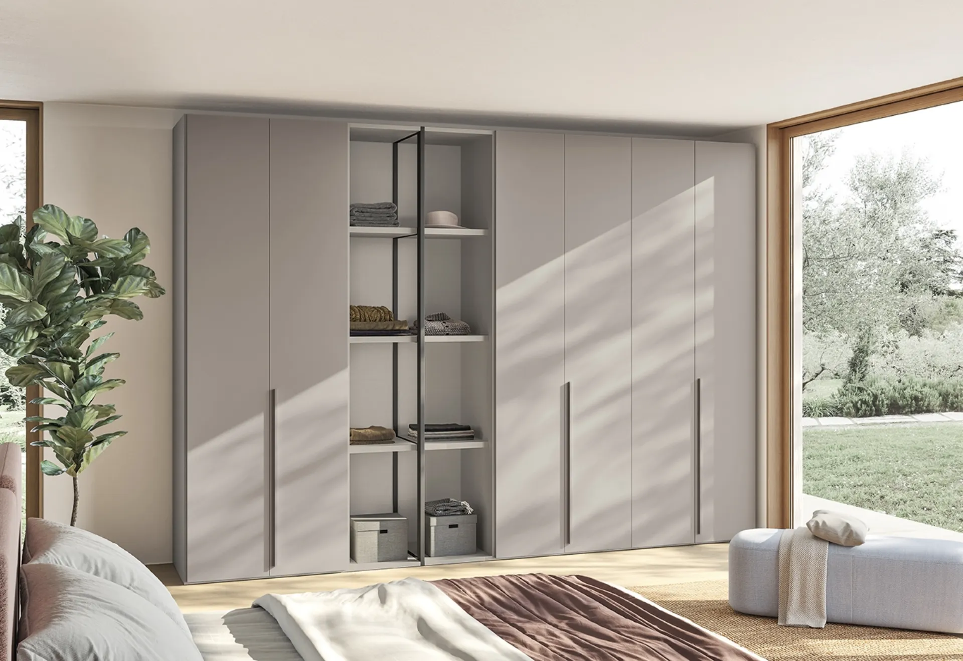 Gli Armadi e le cabine armadio con ante battenti devono progettare la camera assicurandoti una perfetta ottimizzazione degli spazi e un'esclusiva ricerca stilistica. Per ultimare alla perfezione il progetto d'arredo, prediligi le nostre proposte di Arredamento Casa dei migliori produttori, letti, armadi e comodini diversi per stile, dimensione e materiale. La zona notte è dedicata al relax, deve dunque risultare arredata al meglio e completa di mobili e oggetti accessori in grado di creare un'atmosfera sempre distensiva. Contattaci per informazioni e preventivi e potrai ultimare la zona notte che hai sempre sognato grazie ad una ampia gamma di mobili contenitori moderni come questo guardaroba in melaminico in foto.