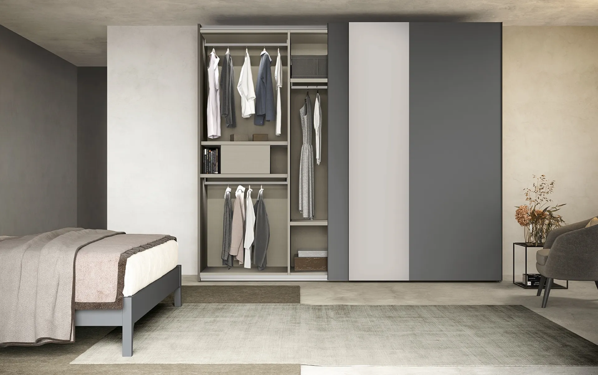 La camera da letto è dedicata al relax, deve quindi risultare arredata con gusto e completa di mobili e oggetti accessori capaci di creare un'atmosfera sempre rilassante. Gli Armadi e le cabine armadio con ante scorrevoli devono allestire la camera da letto assicurandoti una perfetta organizzazione degli spazi e un'esclusiva ricerca estetica. Armadio Freedom N17 di Colombini Casa: compila il form, contattaci e dai vita alla stanza del relax come l'avevi sognata. Per completare alla perfezione il progetto d'arredo, prediligi le nostre proposte di Arredamento Casa delle migliori marche, letti, armadi e comò diversificati per classe, dimensione e finitura.