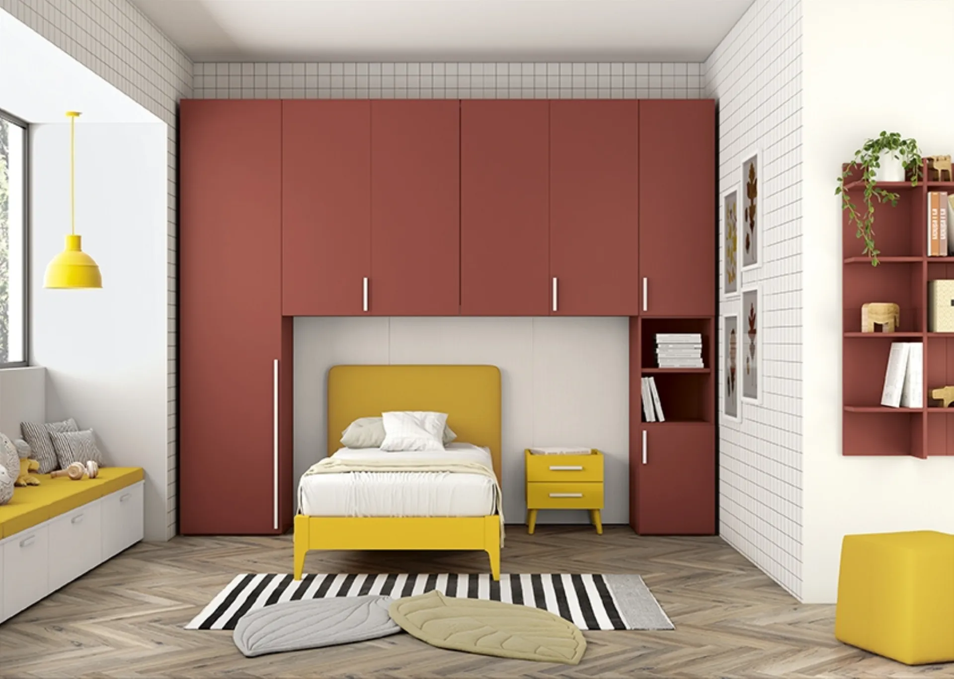 Colombini Casa offre un ricco catalogo di elementi accessori da accostare su misura: troverai letto, armadio, tavolo da lavoro, sedie e librerie. Questa soluzione in melaminico ultima ottimamente le doti di funzionalità e l'estetica della camaretta, in quanto è capace di abbinare funzionalità ed ergonomia. Se cerchi spunti creativi per organizzare ottimamente la stanza dei tuoi bambini, ti presentiamo la Cameretta Golf K42 di Colombini Casa con finitura in melaminico. Porta valore estetico e tonalità vivaci nella stanza dedicata ai più giovani con questa soluzione, una tra le Camerette a ponte per ragazzi di Colombini Casa. Nell'arredamento della stanza dei bambini affidati a noi: nel nostro showroom presentiamo tutte le più belle composizioni arredative moderne per la loro camera.