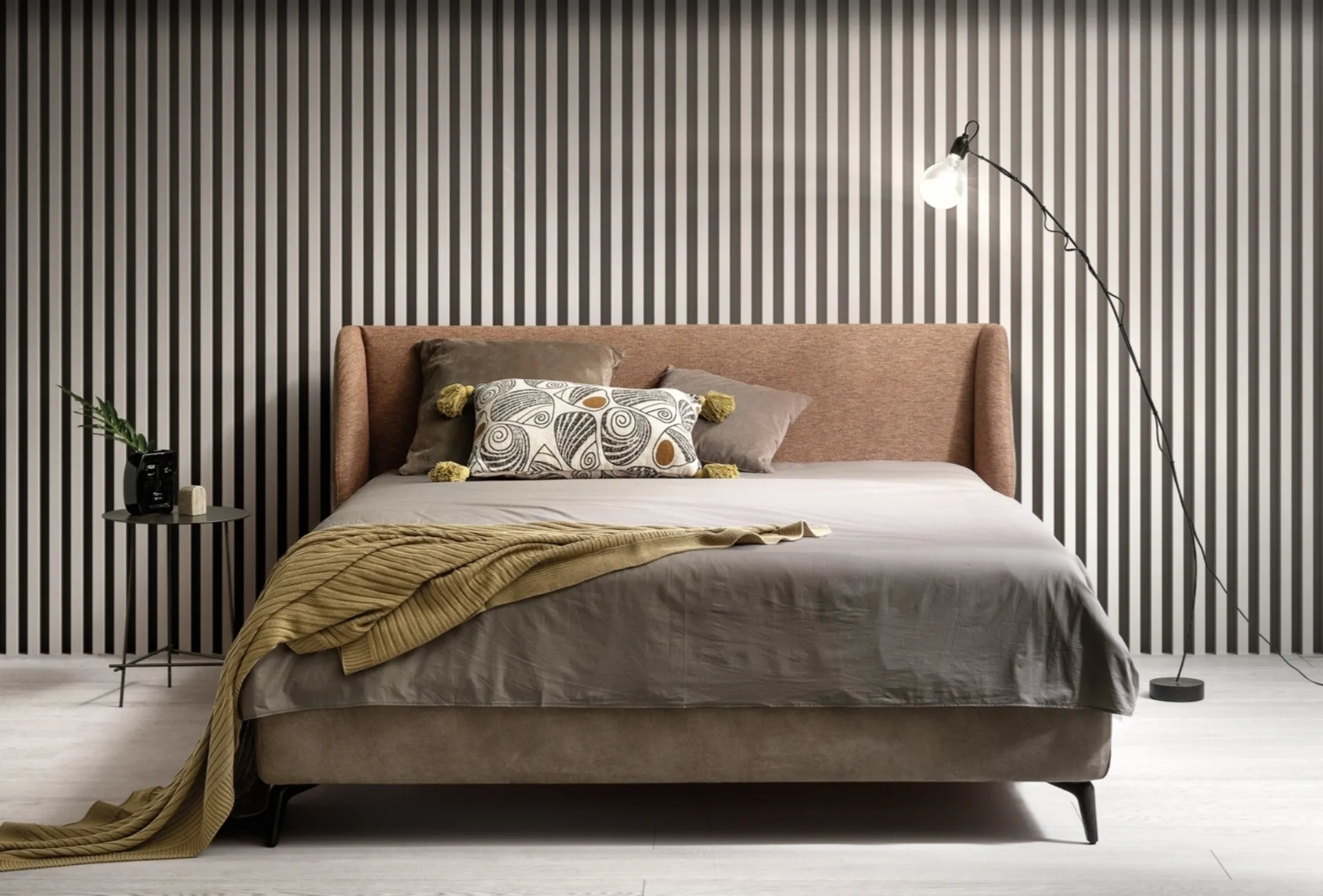 Il Letto matrimoniale con testiera Hug di Bside valorizza la camera assicurandoti il sonno più profondo e un'accurata ricerca stilistica