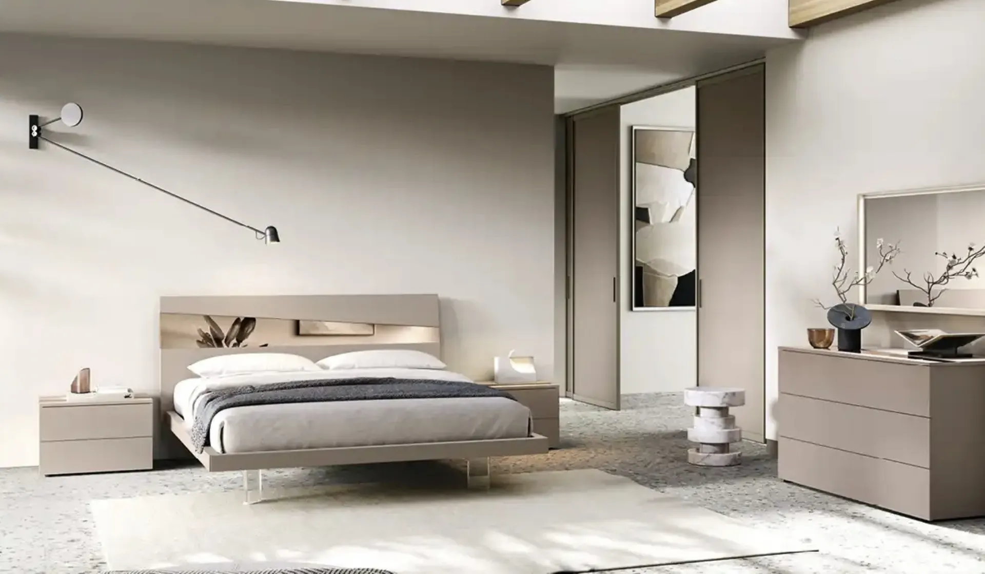 Scegli cromie e texture e realizza il tuo concept d’arredo nella camera, progettandola proprio come l'avevi sognata. I Letti matrimoniali con testiera del brand, leader nella realizzazione di Arredamento Casa per la zona notte, sono pensati per essere abbinati a mobili e oggetti accessori di ogni genere, come armadi e comò, abat jour e piantane. Se vuoi una soluzione in laccato opaco, il modello mostrato in foto è connotato da materiali di prima scelta e forme decise, che invitano a goderti un sonno completo e rigenerante. Il Letto Icaro I14 di Moretti Compact Giorno Notte crea uno spazio accogliente e confortevole in ogni camera, garantendoti il riposo migliore e uno stile unico.