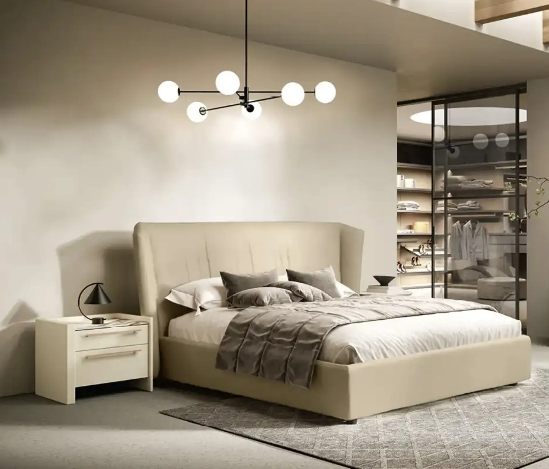 Se desideri creare un'ambientazione intima e distensiva, il modello mostrato in foto fa al caso tuo: nella stanza del riposo dovrai creare un'ambientazione distensiva, per farti ritemprare le energie psicofisiche tutte le notti. Se desideri arredare spazi moderni, ti aspettiamo per presentarti la nostra design di Arredamento Casa per realizzare il tuo concept su misura. Durevolezza dei materiali e grande comfort sono gli ingredienti che distinguono tutti i prodotti della firma, tra cui anche il letto in tessuto nell'immagine. Con il Letto Kaus Y13 di Moretti Compact Giorno Notte del rinomato brand, leader del settore, potrai completare la tua camera da letto garantendoti comfort, funzionalità e uno stile raffinato.