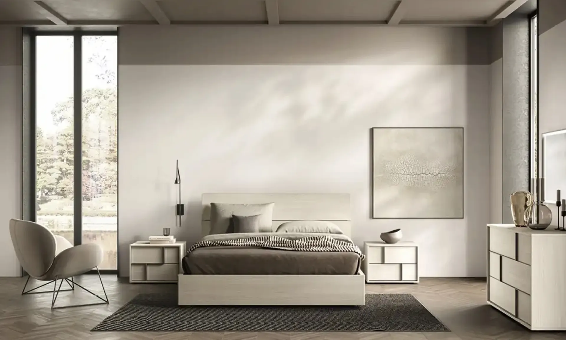 Se vuoi una soluzione in melaminico, il modello presente in foto è caratterizzato da materiali pregiati e linee decise, che invitano a trascorrere un riposo completo e rigenerante. Durante la scelta di un buon modello di letto, valuta attentamente le sue dimensioni, i materiali, la forma e il suo stile rispetto ai restanti pezzi d'arredo. I Letti matrimoniali con testiera della firma, specialista nella produzione di Arredamento Casa per la zona del riposo, sono pensati per essere abbinati a mobili e oggetti accessori di ogni genere, come armadi e comodini, abat jour e piantane. Scegli tonalità e texture e realizza il tuo progetto d’arredo nella camera da letto, progettandola proprio come l'hai sempre immaginata.