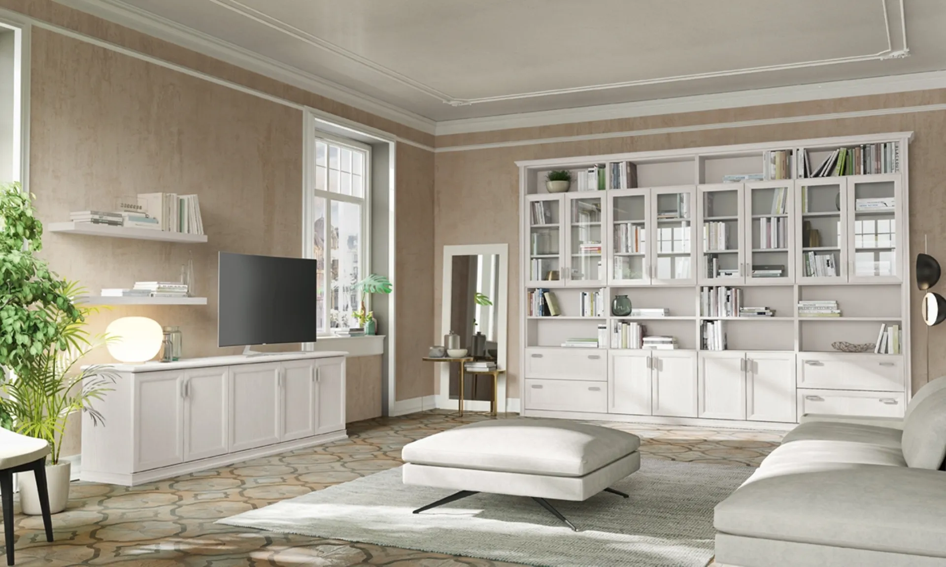 Il soggiorno è, in assoluto, la zona della casa dove ci si dedica al relax ogni giorno, discorrendo con amici e parenti, riposando da soli o guardando la TV. Contattaci per info e preventivi sul modello presente in foto: se desideri ultimare stanze classiche, allora questa libreria dalle linee decise fa al caso tuo. Le Librerie a muro Colombini Casa sono disponibili in differenti forme: angolari, lineari, sospese e realizzabili su misura con diversi accessori, mensole e vani. La Libreria Arcadia AS017 di Colombini Casa nell'immagine, nella variante in melaminico, è davvero funzionale e versatile, solida e durevole, nonché caratterizzabile secondo le più particolari esigenze abitative.