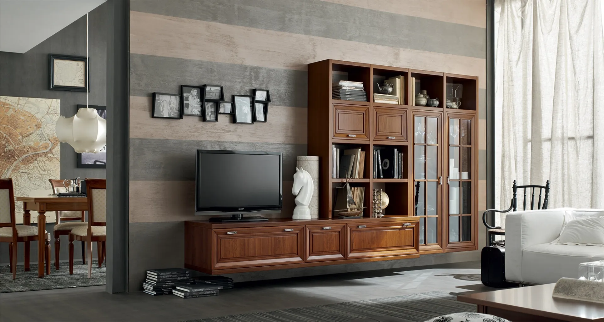 Le Librerie classiche sono sempre particolarmente gradite per organizzare il soggiorno e le pareti, coniugando ottimamente doti di praticità e design. La Libreria Murano MU457 di Maronese Acf nell'immagine, nella variante in legno, è davvero versatile e funzionale, solida e durevole, nonché caratterizzabile secondo le più personali problematiche abitative. Le Librerie a muro Maronese Acf sono disponibili in diverse forme: angolari, lineari, sospese e realizzabili su misura con differenti accessori, mensole e vani.