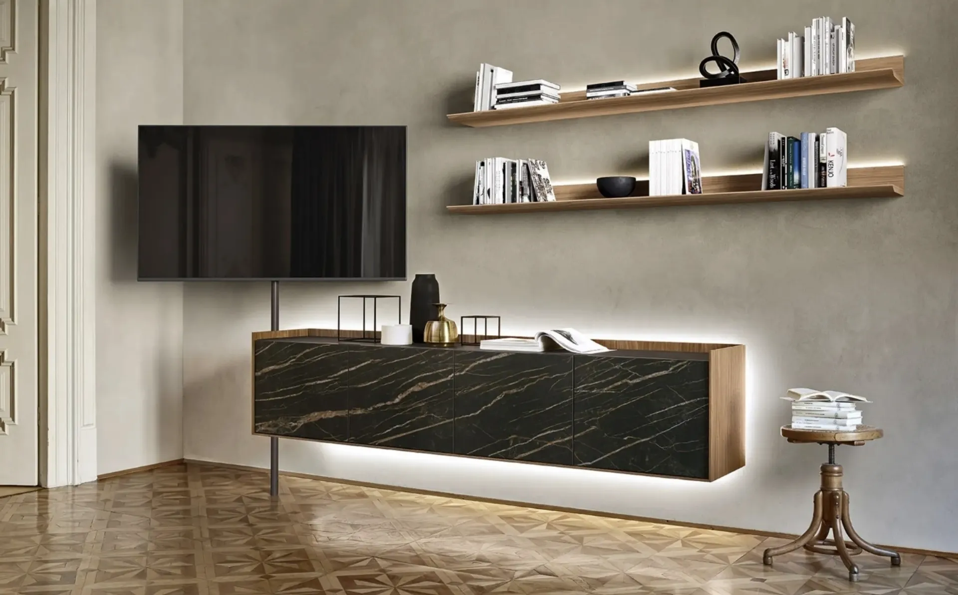 Il modello in foto è appartenente alla linea di Mobili Porta Tv design in legno di Sangiacomo: in negozio troverai solo le composizioni più originali in commercio. Che tu voglia riporci la TV, libri nonché oggettistica varia, un mobile come quello presente in foto saprà personalizzare gli ambienti domestici valorizzandoli appieno. I Mobili Porta Tv, se scelti attentamente, sono utili per ultimare il tuo soggiorno fungendo da multifunzionale piano d’appoggio per oggettistica varia, per la TV e quant'altro. Utili e di grande fascino, i nostri Mobili Porta Tv Sangiacomo in legno per ambienti design sapranno ottimizzare gli spazi valorizzandoli.