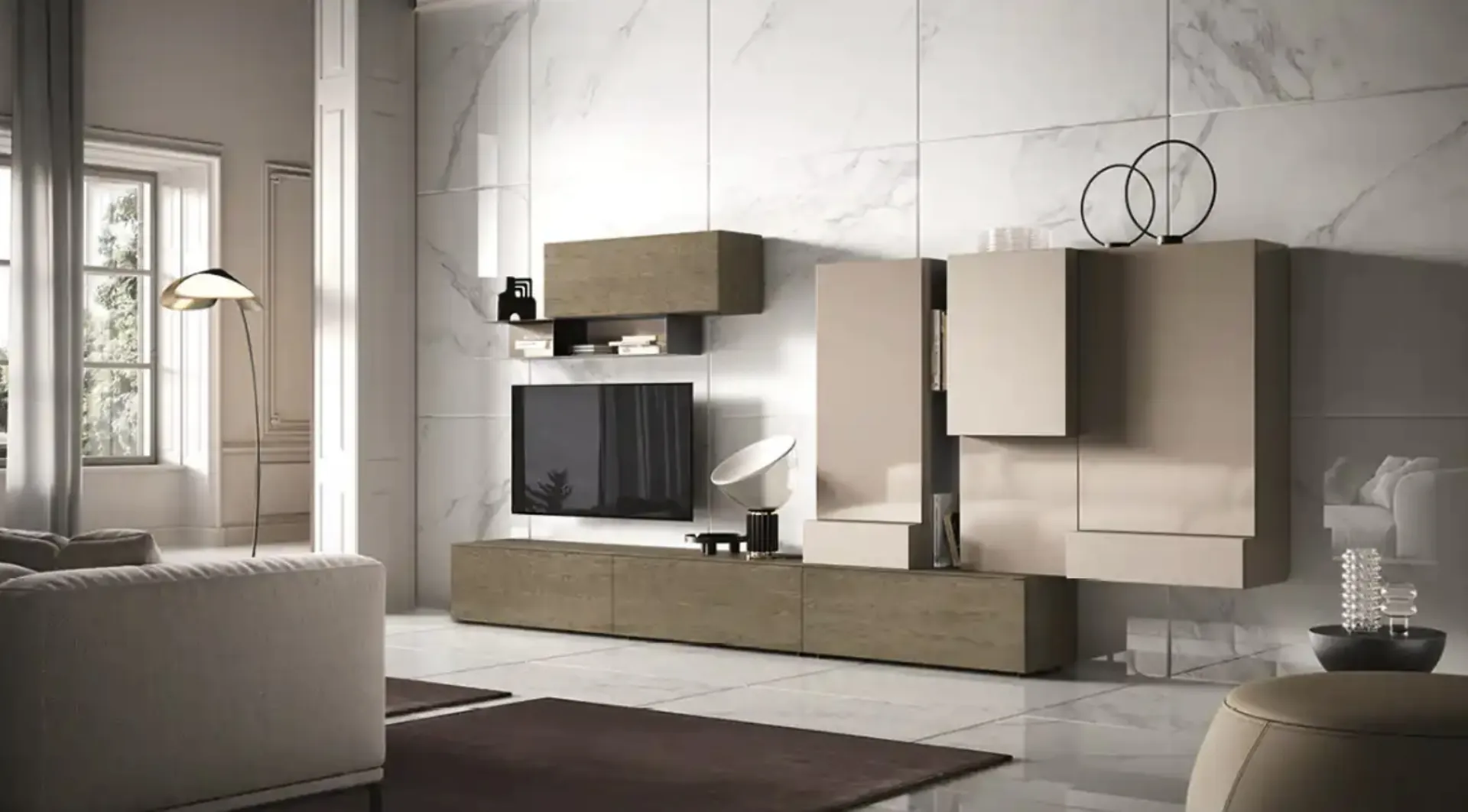 Le Pareti Attrezzate moderne offrono l'opportunità di creare diverse ambientazioni nel living, liberando spazio e sfruttando bene ogni angolo. Scopri la nostra collezione di mobili per il soggiorno della firma Moretti Compact Giorno Notte e potrai arredare la tua casa con un design unico e la contenitività di cui hai necessità. La Parete Attrezzata Kosmos KC119 di Moretti Compact Giorno Notte diventa presenza caratterizzante in stanze di ogni genere grazie ai suoi accessori modulari e alla possibilità di valutare texture, materiali, cromie, forme e tanto altro.