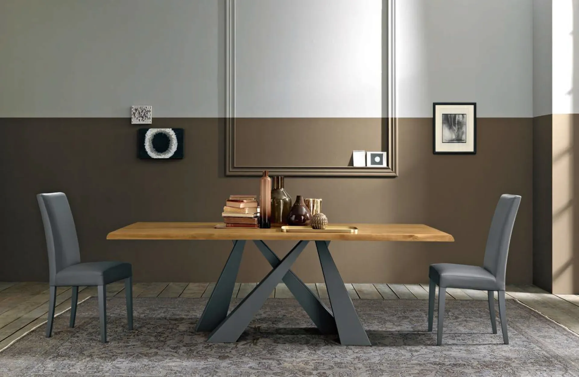 In showroom ti attende un ricco catalogo di Tavoli fissi delle migliori marche, tra cui anche il modello da pranzo presente in foto. Se desideri sostituire gli arredi design che hai in casa o acquistarli ex novo, da noi potrai vedere dal vivo le soluzioni più esclusive in commercio. Durante la scelta del tavolo che fa per te è necessario valutare dimensioni, linee, finiture e stile, per organizzare al meglio lo spazio con un ottimo effetto estetico. Scegli i mobili e oggetti accessori in legno delle migliori marche per ultimare con funzionalità i tuoi locali senza mai sacrificare il valore estetico.