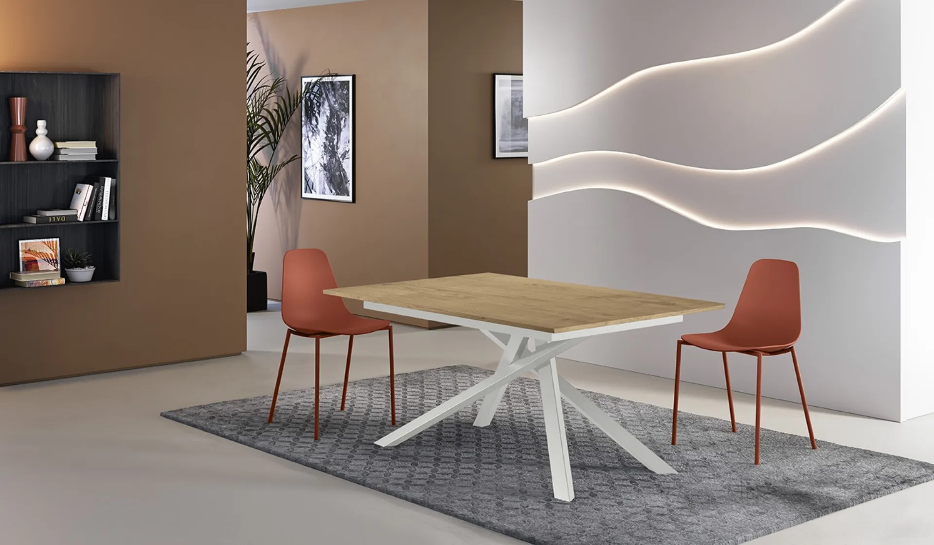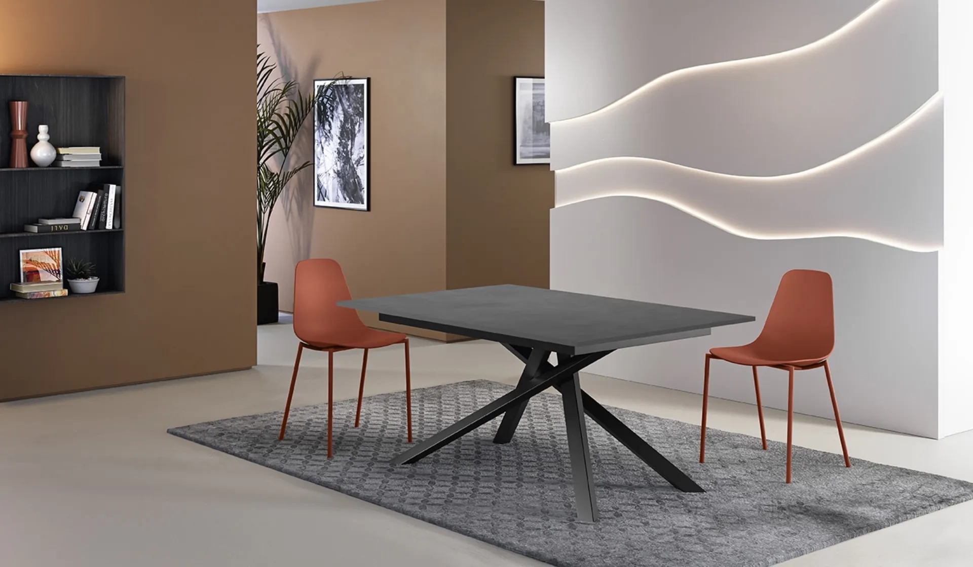 Tavolo allungabile Pulse 25 di Stones: realizzato in materiali di prima scelta è caratterizzato dalle forme decise del top e da un basamento ricercato ed elegante. Ideali per dare vita a degli abbinamenti unici con sedute e complementi moderni, i Tavoli allungabili della firma sono soluzioni tra le più belle in commercio, ideali per il living e la cucina. Il noto e rinomato marchio Stones, specialista nella produzione di mobili in melaminico, ha scelto per la sua collezione un'infinità di materiali, linee e tonalità. Un modello come quello nella fotografia, in abbinamento alle giuste sedute, saprà valorizzare l'atmosfera delle stanze domestiche dedicate in assoluto all'ospitalità.