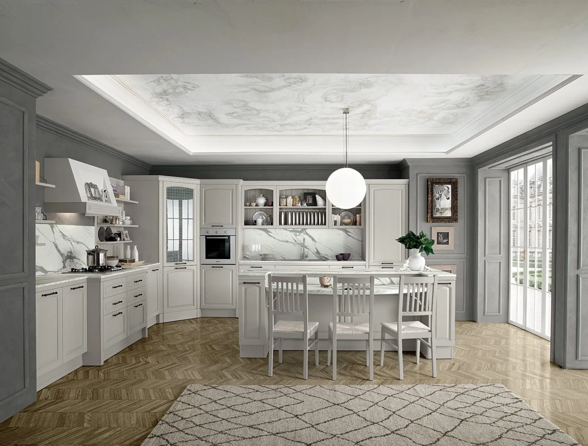 Se sei alla ricerca di un prodotto di gusto classico, che duri a lungo negli anni mantenendo il valore estetico originale, scegli una cucina classica in legno resistente e di grande qualità, come quella qui disponibile. La Cucina Classica con isola Mida 01 di Colombini Kitchen nella fotografia propone un mood accogliente, elegante e sofisticato, portavoce del tipico aspetto suggestivo delle Cucine Classiche.