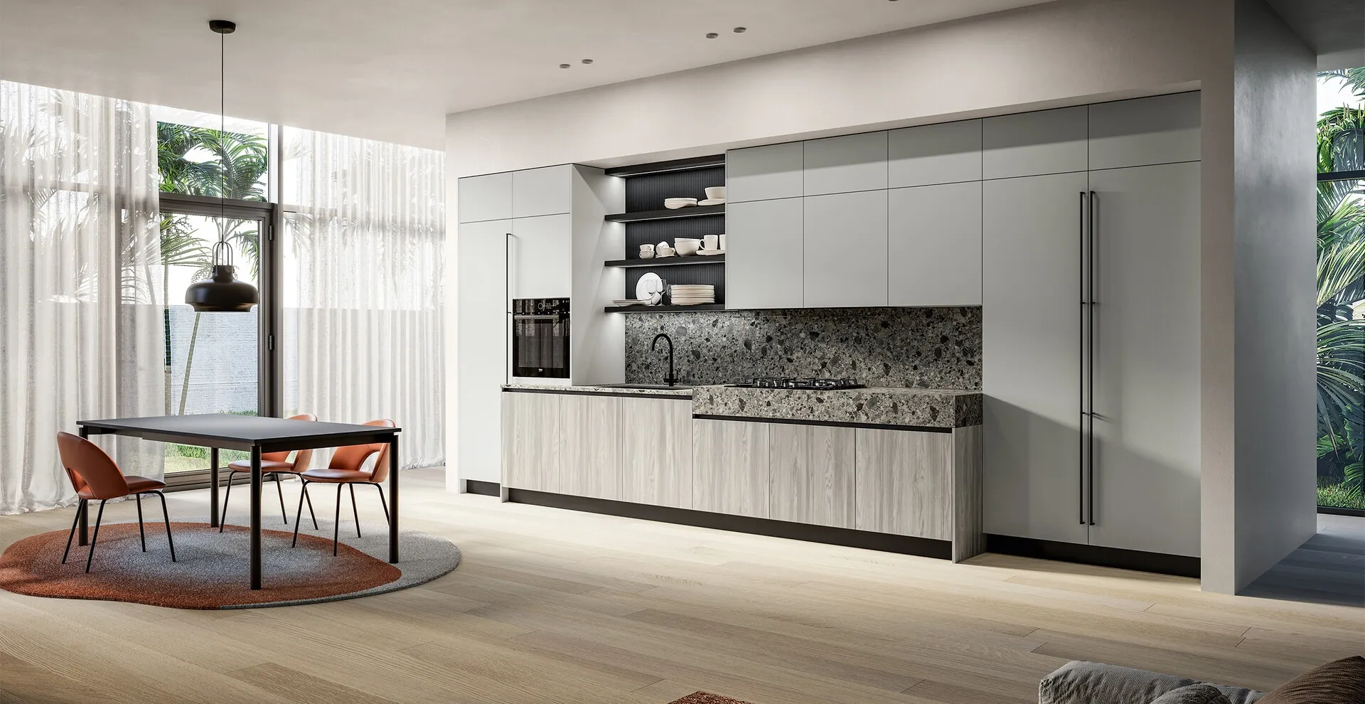 Realizza con noi un progetto su misura: per vivere in pieno agio la tua abitazione, i nostri arredatori sono pronti a guidarti con esperienza nell’acquisto. Se vuoi comprare una soluzione in laminato tra le diverse proposte in linea, componibilità personalizzabile della Cucina Moderna lineare Cloe 03 di Arredo3 ti darà modo di esprimere le tue esigenze d’arredo. Le Cucine Moderne della marca Arredo3 hanno una generale armonia tra mood moderno, innovazione tecnica, praticità e creatività.
